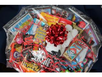 This special children's gift basket includes five DVD's: Iron Man 2, Little Vampire, The Day My Parents Ran Away, Charlie & The Chocolate Factory, & The Ant Bully. Also included is a large assortment of delicious snacks such as: candy, nuts, treats, chips. & gift items.