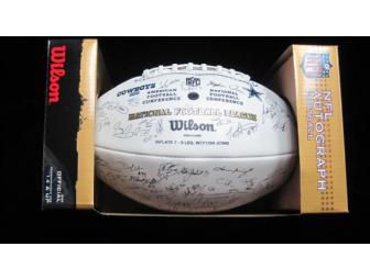 The 2010 collector's edition football features laser-engraved signatures of the entire Dallas Cowboys team. This unique piece of memorabilia is only available through the Dallas Cowboys office and is not open to the public.