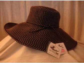 This hat is the perfect travel companion when you are headed to to that sunny destination. Fold it, roll it and pack it in your suit case. When you're ready for some shade just unroll it, shake it and it bounces back. Black and tan this hat will look great with everything in your suitcase and with a UPF of 50+ it will keep you face and neck protected from the harmful affects of the sun and looking.