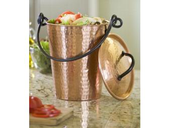 A hammered-copper finish and rustic bail handle give this sturdy kitchen compost pail an antique charm. The bucket is stainless steel for easy cleaning and long service. Holds 5 quarts.