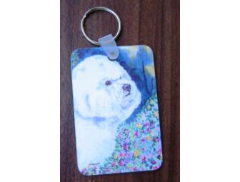 Adorable Bichon Frise key chain to show off your favorite breed. Shows the Bichon on both sides.