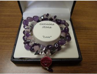 2 strand genuine Amethyst beads w/a Sterling Silver “love” charm measures 7 to 7 ½ “ on stretchy cord.
