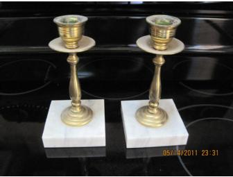 Brass Candlestick Holders with Marble Base