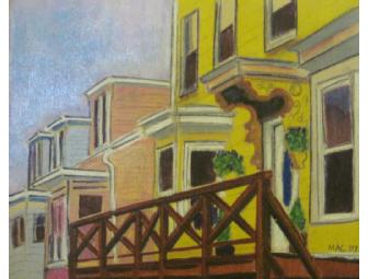 A painting of the street leading to Pavilliion Beach, the heart of Gloucester's historic Sicilian fishing community, by Marci Ann Cohen, 2007.