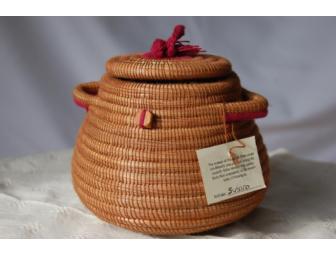 This beautiful pine needle basket was made in El Sauce, Nicaragua by Susana. Half of the proceeds of this basket will go back to her and the other half will go toward the Cazenovia & Chittenango Scholarshp funds. This basket is eco-friendly, using recently fallen pine needles these women gather from their community in the mountains of Nicaragua.