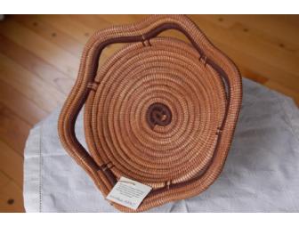 This beautiful pine needle basket was made in El Sauce, Nicaragua by Maria Estela T. Half of the proceeds of this basket will go back to her and the other half will go toward the Cazenovia & Chittenango Scholarshp funds. This basket is eco-friendly, using recently fallen pine needles these women gather from their community in the mountains of Nicaragua.