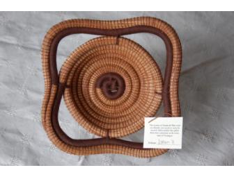 This beautiful pine needle basket was made in El Sauce, Nicaragua by Lilliam B. Half of the proceeds of this basket will go back to her and the other half will go toward the Cazenovia & Chittenango Scholarshp funds. This basket is eco-friendly, using recently fallen pine needles these women gather from their community in the mountains of Nicaragua.