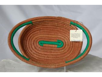 This beautiful pine needle basket was made in El Sauce, Nicaragua by Maria Danelia D. Half of the proceeds of this basket will go back to her and the other half will go toward the Cazenovia & Chittenango Scholarshp funds. This basket is eco-friendly, using recently fallen pine needles these women gather from their community in the mountains of Nicaragua.