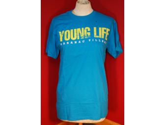 Young Life Saranac VIllage Large T-shirt- Aqua/Yellow
