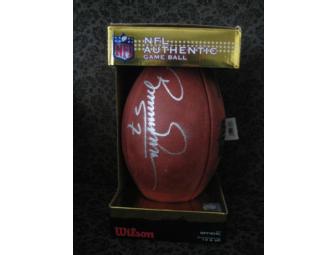 Official NFL game ball signed by NY Jets Quarterback and broadcaster Boomer Esiason.