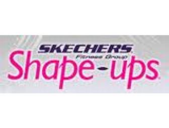 Sketcher's Shape-Ups womens shoes US size 9. Please note: This style runs 1/2 size small. Get sporty in the body-toning Skechers Shape-Ups Fitness Junkie sneakers. Leather and synthetic upper full lacing, padded tongue and collar, breathable fabric lining and cushioned fabric-topped insole. Shock absorbing foam midsole with kinetic wedge for body toning and weight loss benefits. Traction patterned rubber outsole.