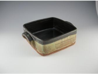 Beautiful handmade stoneware straight from a Lanesville kiln. 7"X7" square X3" high, the earth-tone glazes are of the potter's own recipes and are lead-free and food-safe. This high-fired pottery is oven, dishwasher and microwave safe.