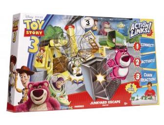 - One Toy Story 3 Junkyard Escape Stunt Set. Action Links connect to activate a chain reaction. It's easy to connect and the stunts work in any order. Includes 3 figures.