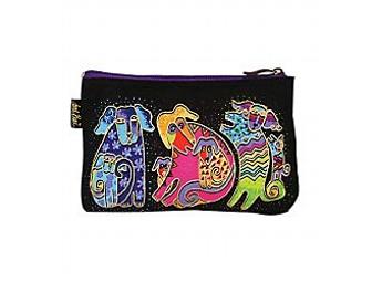 This zippered cosmetic bag features a multicolored design of dogs and measures 9x1x6.