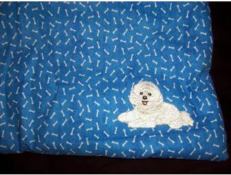 Doggie Blanket, White bones on blue.