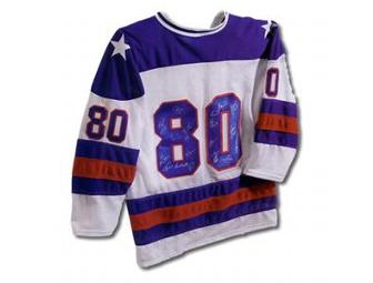 Bids are for a limited edition 1980 US Hockey Team hand-signed official white Olympic jersey. Deemed the 'Miracle on Ice,' the US squad, coached by Herb Brooks, upset the heavily favored Russians at the 1980 Olympic Games in Lake Placid, NY. This moment has been voted the #1 in sports history in the past century time and time again. This authentic reproduction jersey comes signed by all 20 players including notables Mike Eruzione and Jim Craig. Certificate of Authenticity included.