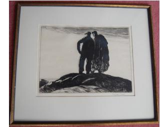 Etching of 2 fishermen by National Academy artist Gifford Beal (1879-1956). Beal was born in New York City and is the son of landscape painter William Reynolds Beal. He is best known for garden parties, circuses, landscapes, streets, flowers and marine scenes. Wood frame, signed lower right.. Dimensions: approx 10" x 12" unframed; 17" x 20" framed.