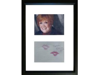 The Broadway Kissing Booth is a must for any collector of Broadway Memorabilia. A unique offering, the framed photo is matched with a lipstick impression "kiss" and autograph. This one features Marni Nixon, the "Ghostess with the Mostess," the moniker given to her for dubbing the lead vocals for some of the greatest movie musicals of all time (West Side Story, The King and I, and My Fair Lady.) Her autobiography, "I Could Have Sung All Night" is rumored to have had the working title, "Audrey Hepburn Dubbed My Face." Ms. Nixon has also included a separate full sized Autographed Headshot (unframed) that will go to the winner.