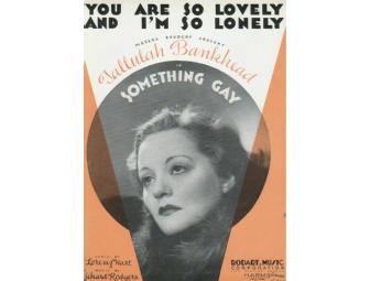 Sheet Music is not just for playing, but are highly collectable for their beautiful artwork. "You Are so Lovely and I'm so Lonely" by Rodgers and Hart was from the show Something Gay starring Tallulah Bankhead, prominently featured on the cover art of this piece.