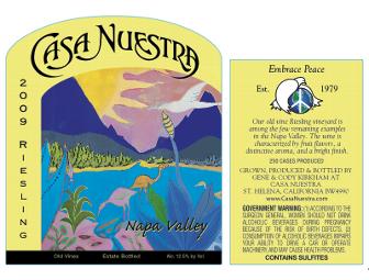 Casa Nuestra has only seven rows and the fence line of Riesling grapes planted on their estate in 1966. With less than 1% residual sugar (RS), it is a beautifully balanced wine with bright, exotic fruits and a racy acidity making the finish crisp & clean. Enjoy slightly chilled on sultry afternoons or all year long with spicy Asian dishes or smoked cheese and apples. Just like the mural (from our winery) that graces the label, we think this wine is out of this world! 247 cases were produced.
