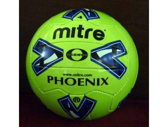 You'll never have trouble keeping your eye on this ball. Bright flourescent green soccer ball, courtesy of Palazolla's Sporting Goods on Main Street in Gloucester.