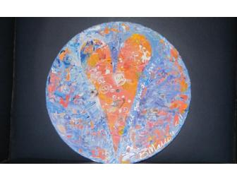 A 12" round LP (Chuck Mangione) forms the canvas for this heart painting by Brenda Malloy, owner and resident artist of Imagine on Rocky Neck.