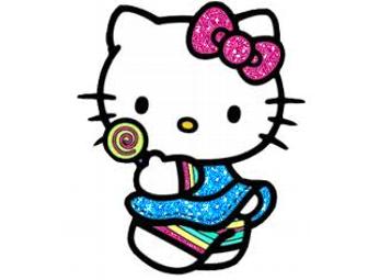 Hello Kitty fedora hat, $25.00 Sephora gift card, t-shirts (M), Lip balm & mini cosmetic bag, nail polish, bracelet, stuffed Hello Kitty, flip flops size 13, silly bands, bubble super sticks, Hello Kitty DVD, SMS text messengers, Big roll bingo, vintage stickers, Tie-Dye girl's one-piece swimsuit (6x), post-its, stationary, toddler socks, knee-high socks 2 pair, plastic purse with compact lip gloss, charm bracelets, cosmetic case, window Shadez for car, heart key chain, coloring books, sequin purse, hard binder, pencils, fun case: crayons, activity book, sticker book, toddler large HK backpack, child's umbrella, 100 piece jigsaw puzzle, 6T girls t-shirt, Hello Kitty Swim grear, mask, fins & webbed gloves.