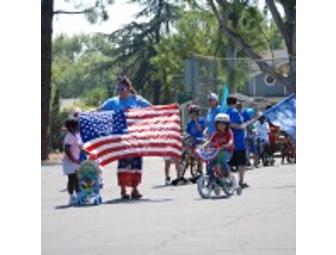 Certificate for Week 1 (Independence Week) of Colfax Summer Camp - June 27th - July 1st. Help create a float for the famous Valley Village 4th of July Parade, decorate campers bikes, wagons or scooters for the parade, and create instruments for our "Go Green Marching Band." Includes registration fee, camp t-shirt (can be exchanged for appropriate size) and Ms. Leila's amazing camp Monday - Friday from 9:00 am - 4:00 pm.