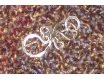 Keep the shawl from slipping off your shoulders with this Filigree Stick Pin hand-crafted by Rockport jeweler Leslie Wind. The design measures approximately 2" with a 3" stick, and can also be used as a barrette.