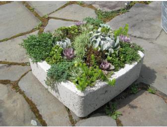 Designed by floral designer Bonnie Stafford, this hypertufa planter filled with sedum and echeveria and thyme will be the center of attention on your sunny patio. The substantial planter measures 8 inches high and is 15+ inches square.