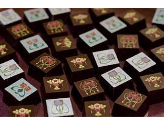 Handcrafted by Mendocino chocolatier Shelley Fields, these chocolates will delight the eye as well as the palate. Shelley's new line of Art Deco inspired chocolates feature designs reminiscent of the Macintosh Rose Arts and Crafts tiles from the early 20th century. The the winning bidder will receive ten boxes with 12 pieces each from the Cocoa Bungalow assortment which contains four kinds: Dark on Dark (Dark Chocolate Ganache), Peppermint (Dark Chocolate & Organic Peppermint Ganache), Peanut Butter (Organic Salted Peanut Butter & White Chocolate Ganache), Organic Valencia Orange & Cayenne Pepper (Dark Chocolate Ganache). Almost too beautiful to eat, these lovely Arts and Crafts inspired delicacies are the perfect gift or a decadent reward for yourself!