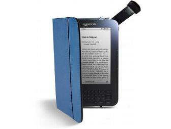 Kindle Wireless Reading Device, Wi-Fi, Graphite, 6" display with Kindle Lighted Leather Cover in Steel Blue