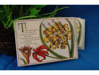 A set of 4 Redoute-inspired greeting cards with envelopes. Design includes the lovely quote: "To guild or find gold, to paint the lilly, to throw a perfume on the violet…to seek the beauteous eye of heaven to garnish is wasteful and ridiculous excess." Send your messages in style!