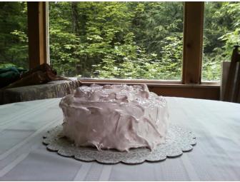 Let them eat homemade, delicious cake! Enjoy this 3-layer homemade Vanilla Butter Cake with supreme lemon filling and mile-high frosting on glass cake plate by a local baker! Say happy birthday or I love you with a home-made cake!