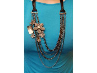 Got bling? Need some new jewels? This spectacular silver floral chain and ribbon necklace (or belt) will compliment any outfit. Made of genuine crystal, silver-tone chain and black ribbon from Cookie Lee Jewelry. It is 26-48 inch adjustable ribbon to wear as gorgeous necklace or accent around your waist! What a great accessory!