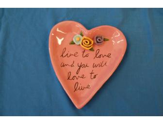 "Live to love and you will love to live" with this heart shaped decorative plate