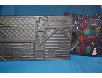 Gingerbread house mold and holiday pillow