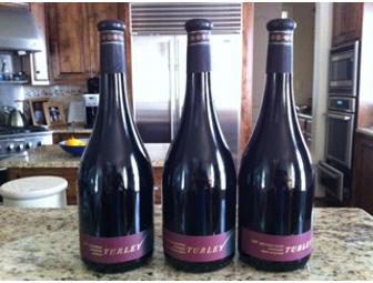 Three of the most sought after wines from Turley: 2007 Dry Creek Valley Zinfandel, Grist Vineyard; 2008 Howell Mountain Zinfandel, Rattlenake Ridge; 2007 California Zinfandel, Juvenile.