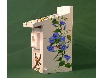 Locally crafted birdhouse, painted by local artist Margrit Mason.