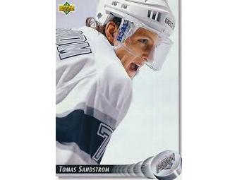 Tomas Sandstrom Signed Puck and Card in Case