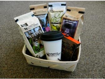 This elegantly packaged gift basket contains four 12-oz bags of our delicious partnership coffee beans, a light, medium, and dark roast as well as a medium roast decaf: Gorilla Fund Coffee, Save Our Wolves Dark Roast, Songbird Coffee from Nicaragua and this team member's favorite, Mirembe Decaf from Uganda! Topping it off is a box of chocolate-covered espresso beans and a ceramic travel mug. Thanksgiving Coffee Company is a proud family business located overlooking Noyo Harbor in Fort Bragg, California. The company is dedicated to wildlife protection and environmental and cultural issues while significantly advancing the art of fine varietal coffee roasting worldwide. This prize is a coffee lover's dream! And, Thanksgiving coffee is "not just a cup, but a just cup."