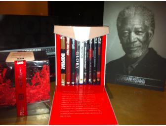 This fantastic set includes the AFI LIfetime Achievement award program, a chocolate Fedora Hat and a Boxed/DVD set of 3 DVDs & 6 BluRay discs featuring Morgan Freeman's fabulous films such as Driving Miss Daisy, Million Dolar Baby, Glory, & The Shawshank Redemption.
