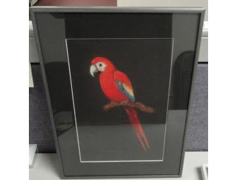 "Tropical Bird - Red Macaw" Framed 11 x 13-1/2 pastel