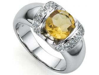 Citrine and CZ Ring, 18K White Gold Plated, Size 7