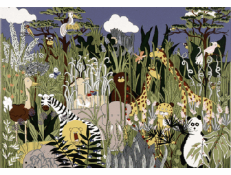 The original painting was inspired by the jungle scenes of Henri Rousseau, the French "naive" painter. Sev's painting fairly brims with delightful creatures peeking out through the lush foliage of the jungle. A captivating, fanciful motif, Jungle Buddies has been reproduced as a children's umbrella to raise funds for the World Wildlife Foundation. It has also been printed onto fabric, women's accessories, and a puzzlel! The artist describes her philosophy: "I paint because I love creating images of the happier side of life. I am drawn to exuberant colors and details. My style is often called Naive, or Modern Primitive, but I prefer to use the term "self-taught." This is the only serigraph Sev Ickes has made from an original painting. The master printer, Stuart Burton, is from San Diego. There are 19 hand cut stencils involved in creating the serigraph, giving the richness of detail and clearly defined color to the work. The print measures 30" X 22" and is printed on Rives BFK FRANCE paper. The edition is limited to 250 copies and 5 artist's proofs. This Prize is #234 of the edition, and of course is signed by the artist. Only 16 more serigraphs of "Jungle Buddies" will be produced; as the edition comes to an end, the work appreciates in value. A Certificate of Authenticity is enclosed with a copy of the artist's bio.