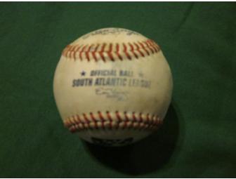 This is a South Atlantic League baseball, signed by Bryce Harper, of the Hagerstown Suns (Washington Nationals A-level minor league affiliate)