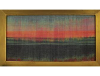 silk and dyes, double ikat and dye-painted warp, framed in gold leaf, 12 1/4" x 20 1/4"