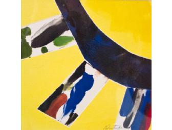 unique monoprint with watercolor, 5 1/2" x 5 1/2" image, 14" x 14" framed