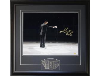 Autographed 8x10 photo of Mario Lemieux on Opening Night of the Consol Energy Center pouring Mellon Arena Ice onto the Consol Energy Center Ice.