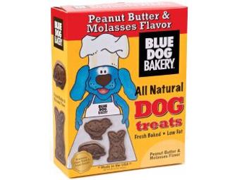 Case of 6 20 oz Blue Dog Bakery Peanut Butter and Molasses Flavor all natural dog treats, fresh baked and low fat.